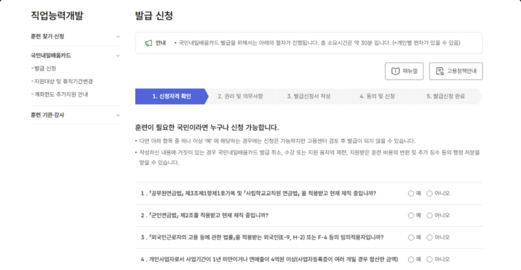 1. 국민내일배움카드 발급신청
