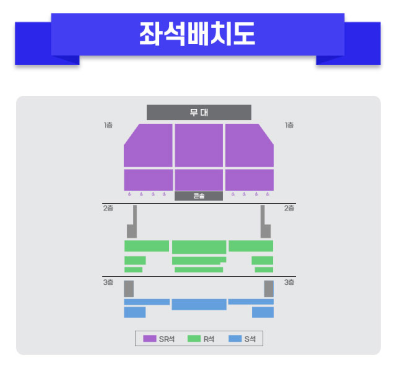 - SR석 1~3열 중앙: 무대를 가장 가까이서 볼 수 있는 프리미엄 뷰, 인기만점이나 가격이 비쌈.