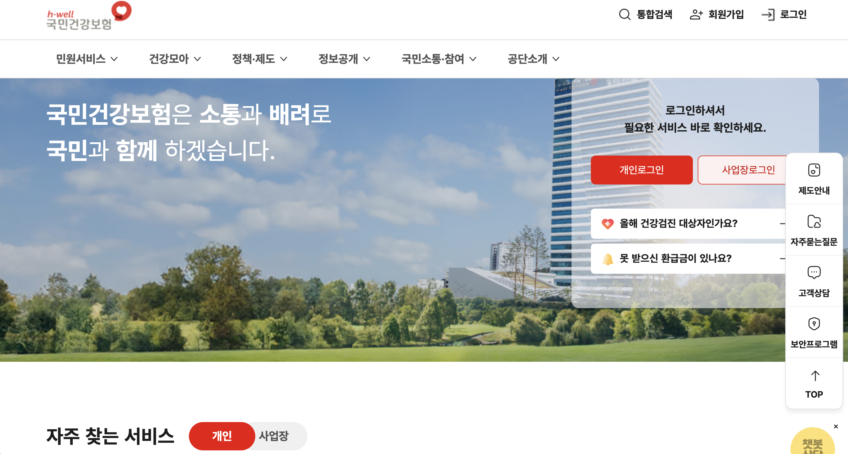 ① 국민건강보험공단 홈페이지