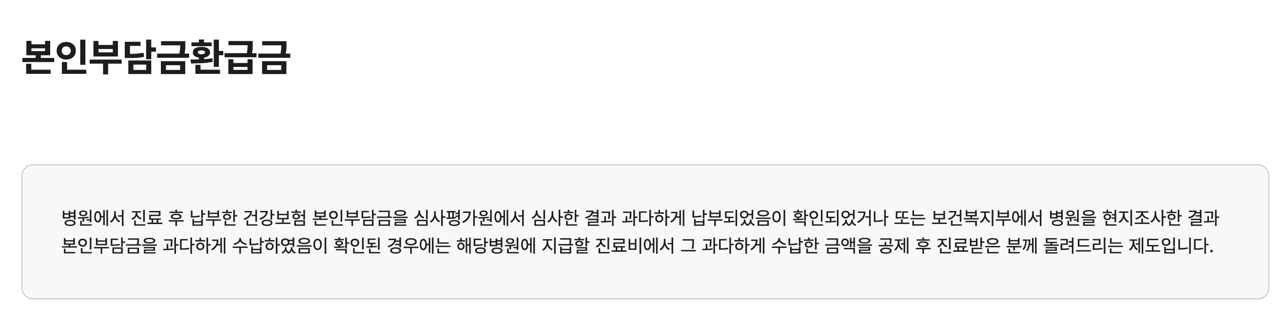 연간 병원비 중 건강보험 법정 본인부담금이 일정 금액을 초과할 경우, 그 초과금은 국민건강보험공단에서 환급합니다.