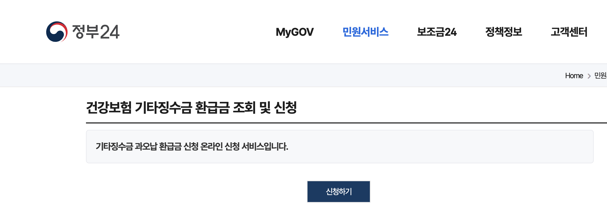 - '건강보험 환급금' 검색 후 신청 페이지 이동