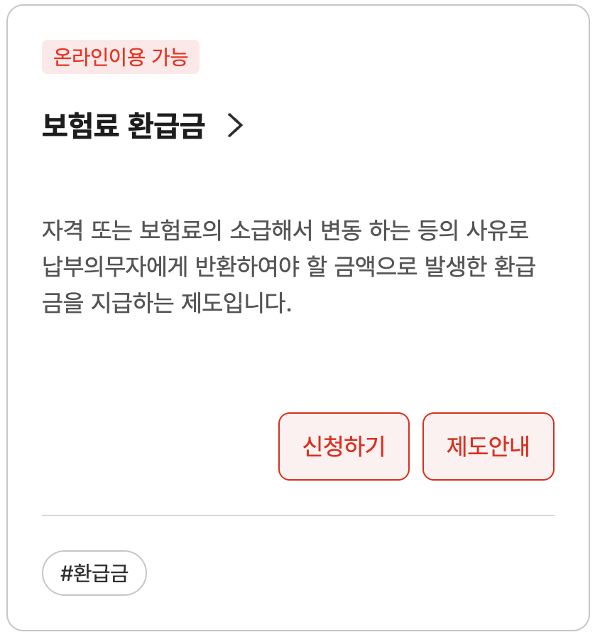 - ① 보험료 환급금: 보험료를 이중납부, 착오납부한 경우 — 직접 신청 필요