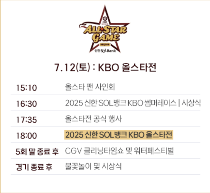 아직 2025 KBO 올스타전 예매 일정은 미공개 상태입니다.