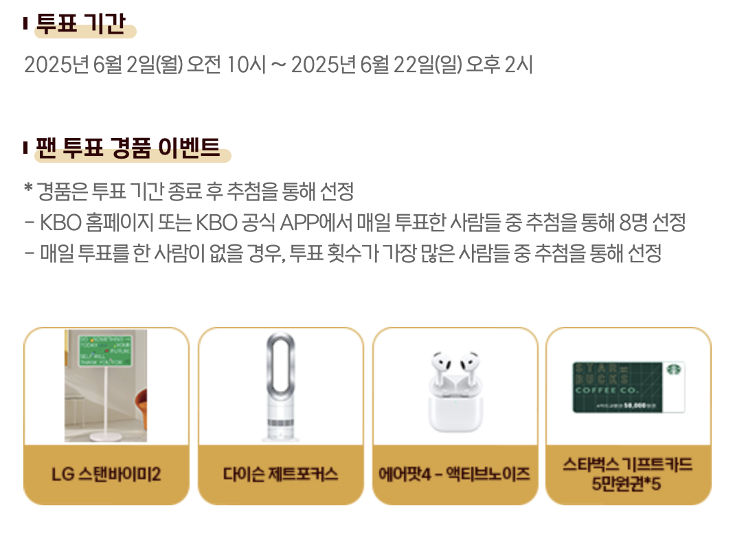 ※ KBO 계정 1개로 각 채널에서 1일 1회씩 투표 가능 (총 3표)