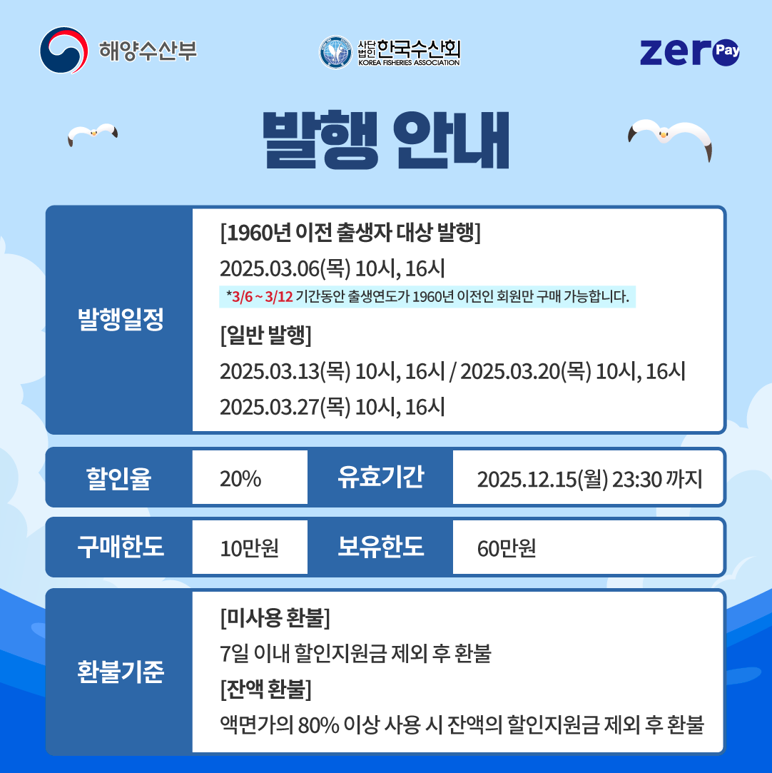 2025년 수산대전 상품권 행사는 다음과 같은 일정으로 진행됩니다: