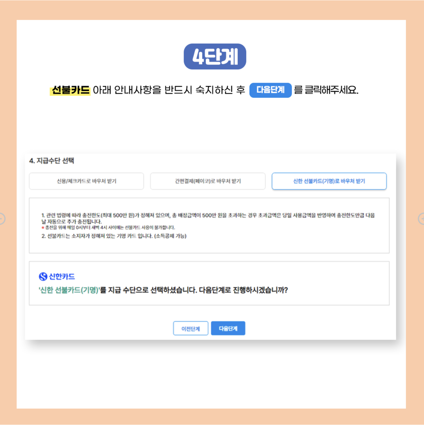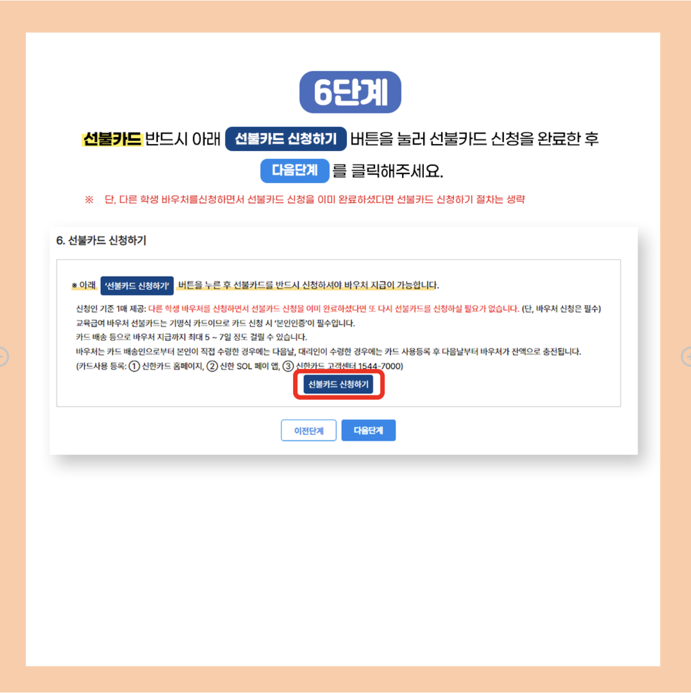 - 무기명 선불카드로 이전에 받은 경우 자동신청 불가 → 반드시 재신청 필요