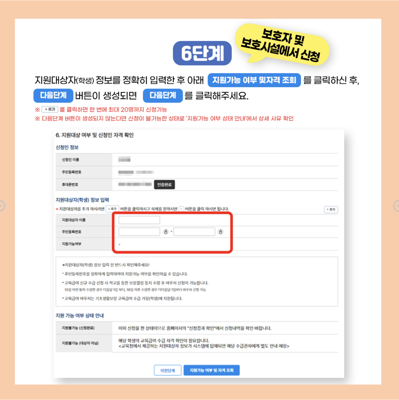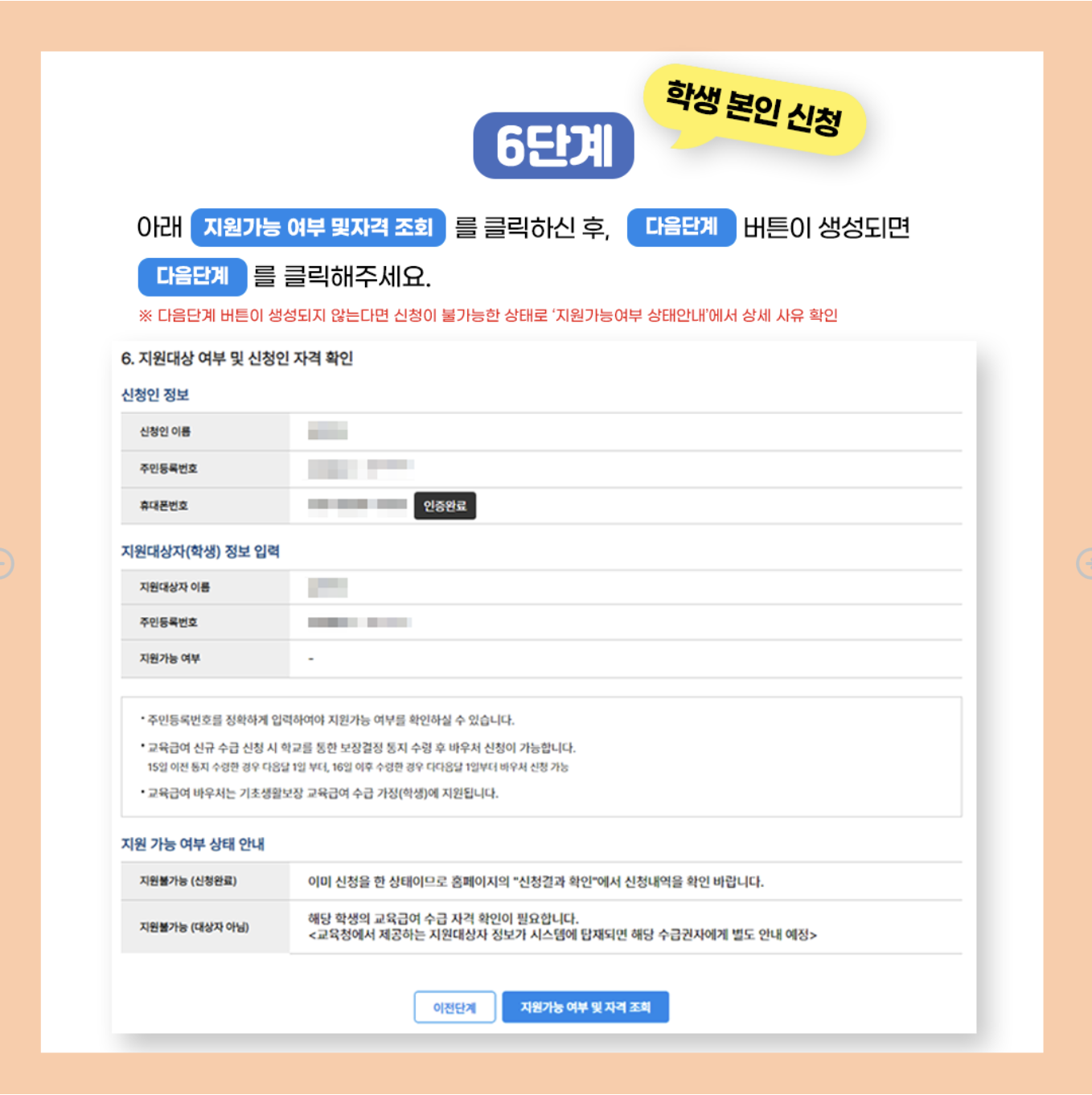 ✅ 신청 가능일은 반드시 교육급여 보장통지를 받은 후 확인 가능합니다.