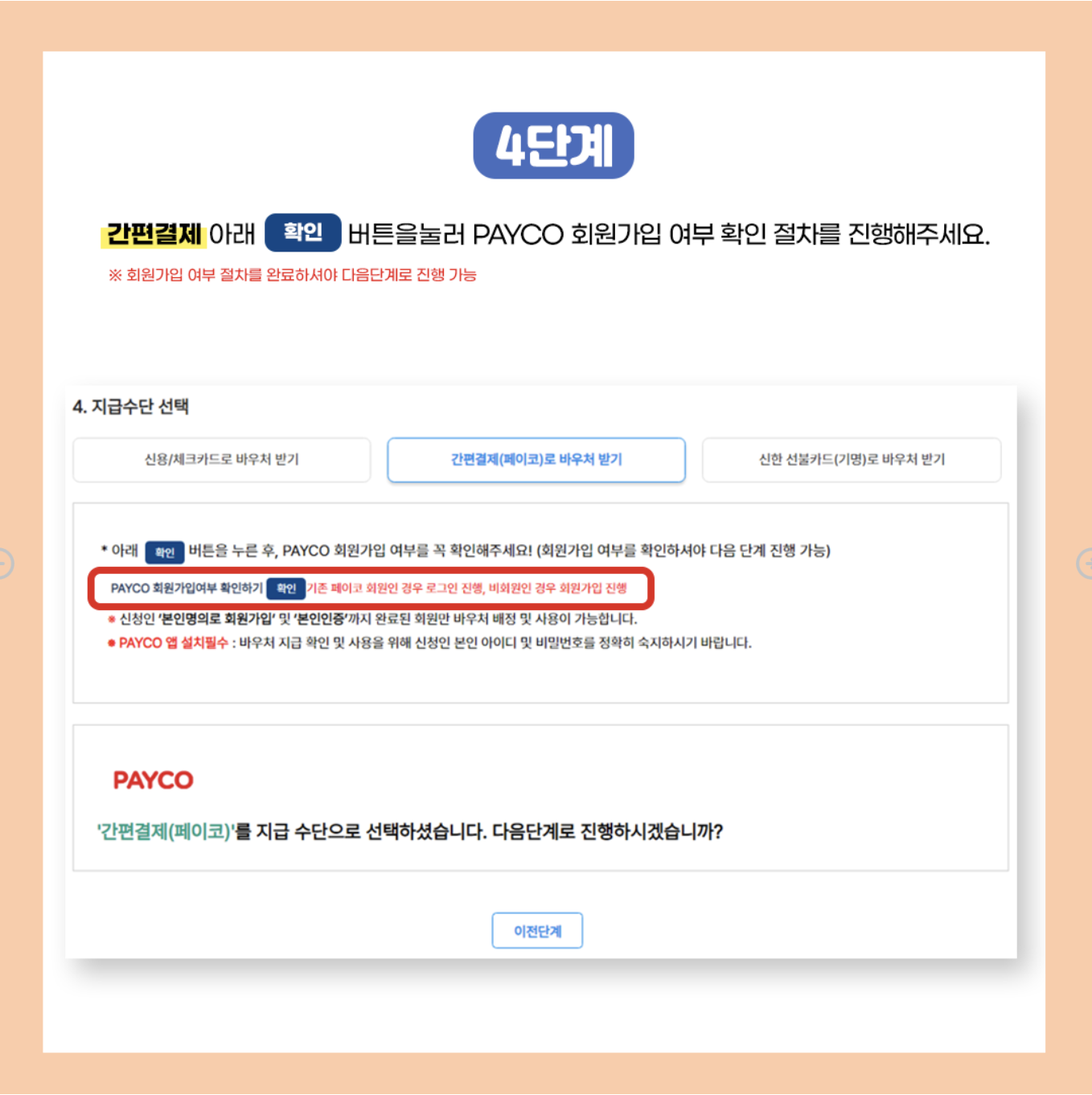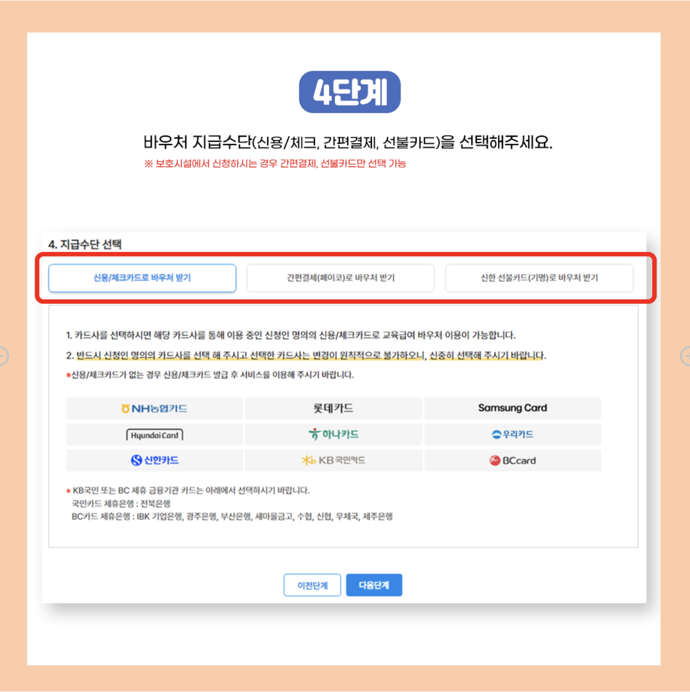- 지급수단 선택 (신용·체크카드 / 간편결제 / 선불카드)