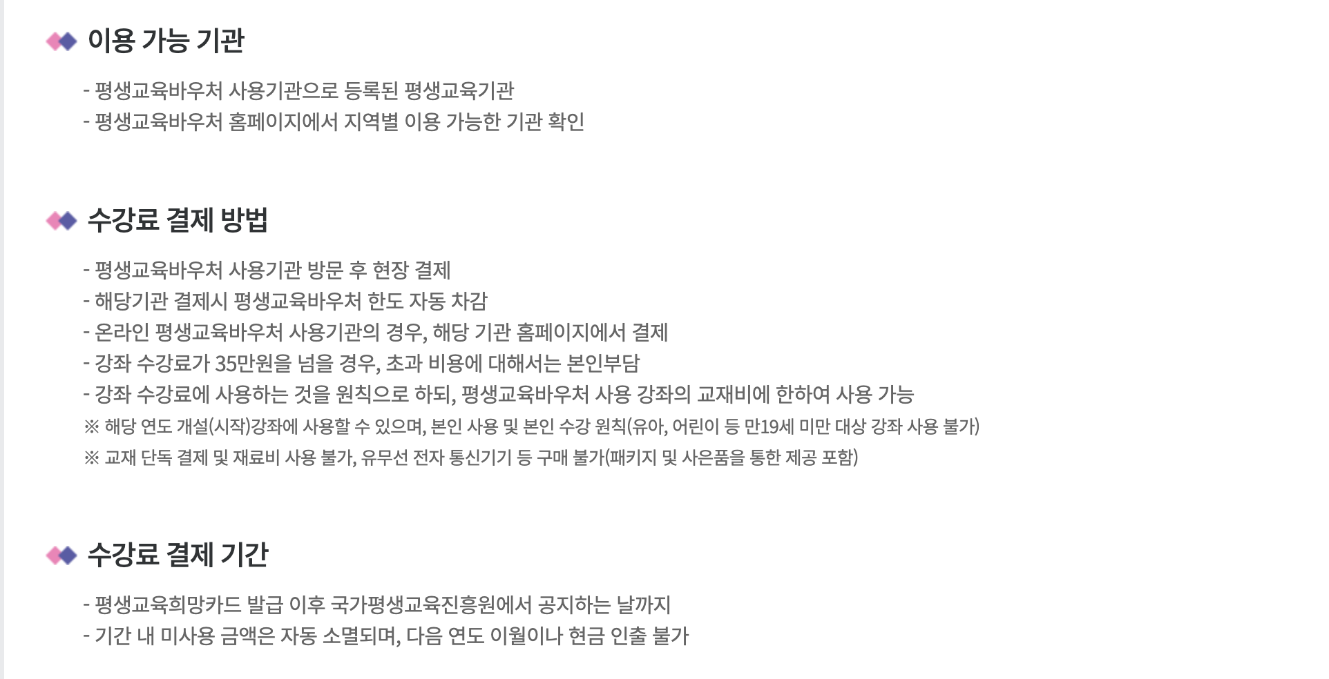- 사용처: 수강료 및 해당 강좌의 교재비