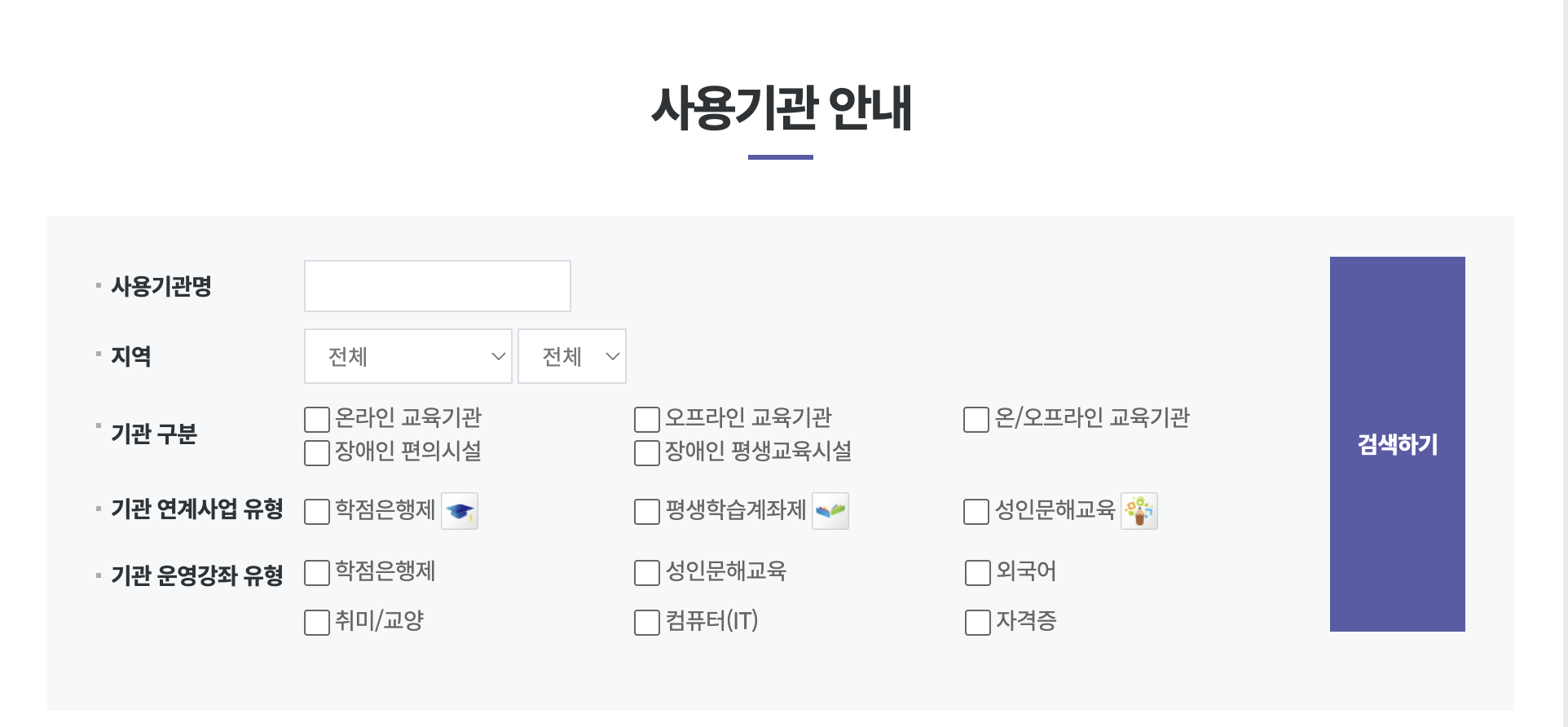 ※ 반드시 등록된 사용기관의 강좌만 해당